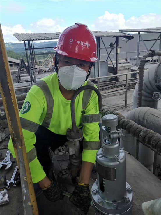 2020年由于突發的新冠疫情,菲律賓實施航空管制和閉關政策,正在國內短暫休假的苗玉民被通知不能返回菲律賓。得知消息后,苗玉民心急如焚,甚至自責的認為,如果不回來休假就好了。為了保證電站安全運營,苗玉民一邊與現場菲籍員工視頻通訊,反復叮囑電站操作細節,指導生產運營,一邊遠程安排電站員工做好疫情防控工作,確保生產、防疫兩不誤。同時積極與當地中介機構聯系辦理返回菲律賓的外交批文。他始終保持24小時待機,生怕錯過任何一條有效信息。此時對他來說,前往每天確診病例高達2萬的菲律賓不可怕,不能立刻回到現場才最讓他忐忑不安。終于,在一年的積極努力下,2021年3月,所有赴菲的批文、背書等材料準備齊全。苗玉民迫不及待的拎著他早已準備好的行李箱,帶領5人團隊重新起航,返回菲律賓子公司現場。
